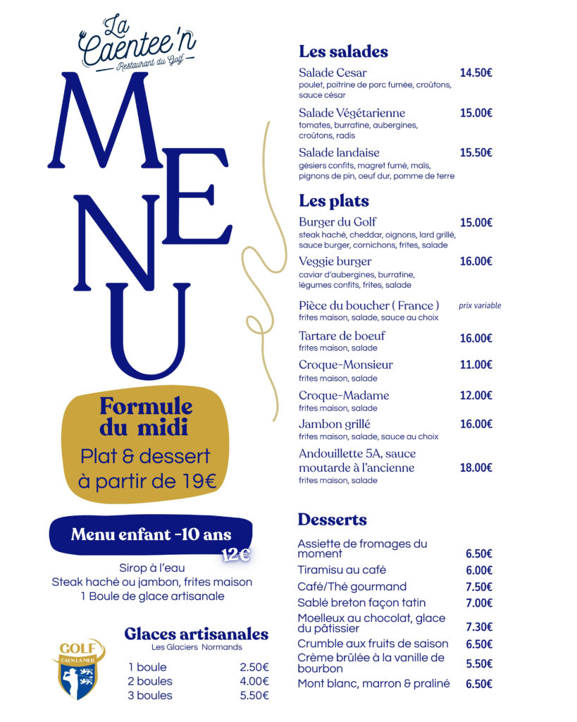 Situé au cœur du golf, le restaurant La Caentee’n vous accueille 7 jours sur 7 dans une grande salle