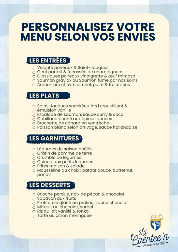 Nous adaptons les propositions de menu à la saison, consulter ci-dessous les différents choix du moment