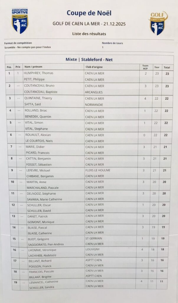 Après avoir partagé, pour certains, un convivial menu de fête au restaurant du club, 38 golfeurs et golfeuses